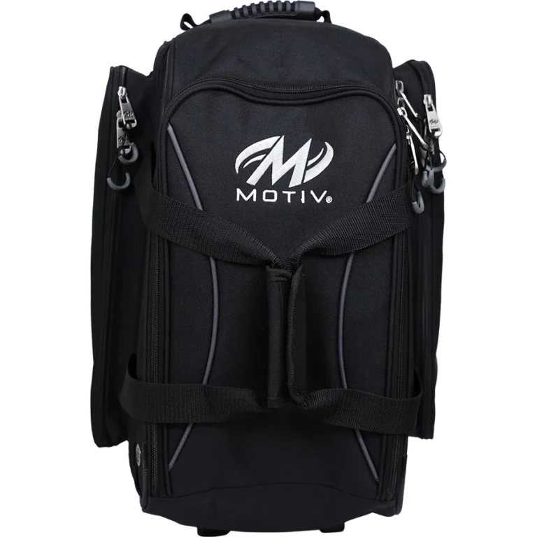 Motiv Velocity 2 Ball Double Roller features 600D polyester construction, oversized 4-inch wide-stance wheels, a vented shoe compartment that fits up to men’s size 15, and multiple accessory pockets. Backed by a 2-year limited warranty.